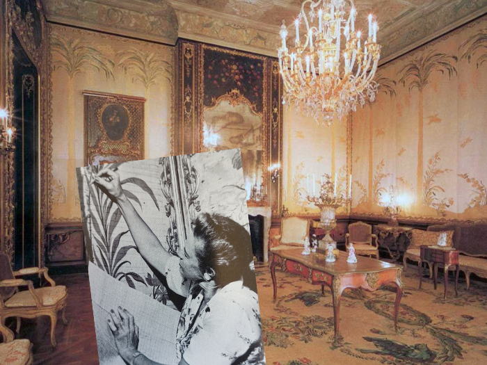 Hearst’s feedback upon seeing the finished product was that the fabric looked too new. Franco took the yardage back to his apartment where the bathroom doubled as a dye house, and brushed it with dye to achieve an antique look. Needing a place to dry the fabric, Franco placed the yardage on the roof of the building overnight, not knowing it would snow. Upon his discovery the next morning, Franco remained calm and took coal dust and a hose to the snow laden fabric, unexpectedly achieving the perfect antiqued finish. Hearst was very pleased with the final product and called it “the best reproduction that anyone had ever seen.” The ‘San Simeon Brocatelle’ became the first fabric woven by Mr. Scalamandré at the Long Island City mill.