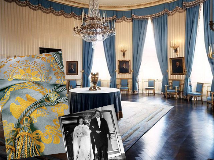 During the Kennedy administration Scalamandré received one of its highest profile commissions for the White House. Stéphane Boudin of Maison Jansen oversaw the redecoration of the White House's public staterooms, and entrusted Scalamandré to complete the job. Scalamandré agreed to reproduce early 19th century textiles for the Blue Room draperies, as well as the Red Room's walls, draperies, and upholstery. In addition to this, Sister Parish selected stocked Scalamandré fabrics for the White House's residential interiors.