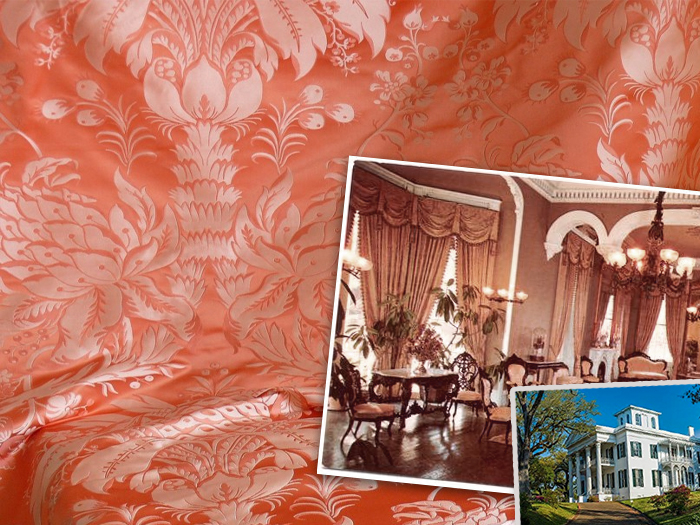 Working from an 18th century Italian design, Scalamandré reproduced a large scale lampas with a stylized pineapple for Stanton Hall, a palatial mansion constructed in the 1850’s, in Natchez, Mississippi. This lampas was eponymously named “Natchez XVIII Century”.