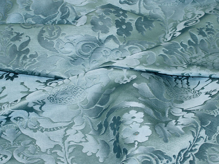The restoration of Vizcaya, the Miami, Florida residence of industrialist James Deering, featured the largest pattern ever recreated by Scalamandré, with a panel measuring 195” tall and 56” wide. The original fabric was an 18th century French silk brocaded lampas owned by Marie Antoinette. Scalamandré reproduced the 'Palm Tree Panels at Vizcaya' as a donation to the museum. The project took over two years to complete.