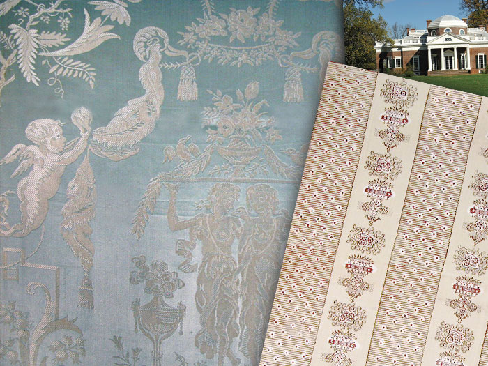Franco Scalamandré visited Monticello, the home of Thomas Jefferson. With the aid of designer Nancy McClelland, drawings and notes documenting Monticello's original curtains were located and Scalamandré wove new damask and lampas fabrics for the draperies and bed hangings, a project that continued through the 1950s.