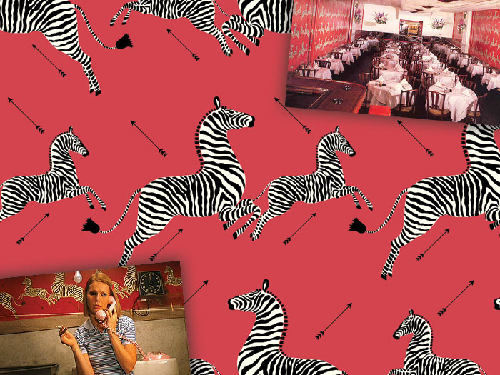 Originally designed in the 1940s for Gino of Capri restaurant, lovingly known as "Gino's" by New Yorkers, Scalamandré restored the Zebras wallcovering in this Upper East Side institution in the 1970s after it was destroyed in a fire. Flora Scalamandré, wife of Franco Scalamandré, free handed the signature motif that would come to be known as the iconic Scalamandré Zebras design. This vibrant, playful wallpaper has truly withstood the test of time. It has been immortalized in films such as Wes Anderson’s "The Royal Tenenbaums” and Woody Allen’s "Mighty Aphrodite.” Zebras also made guest appearances across the country in Kate Spade and Barneys New York retail installations.