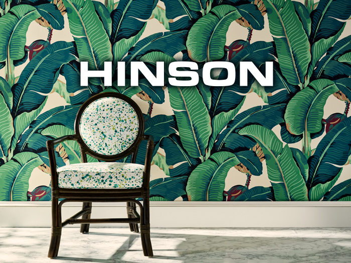Founded in 1972 by Harry Hinson, the brand Hinson specializes in hand-screened wallcoverings as well as printed and woven fabrics, often inspired by historical patterns or documents.