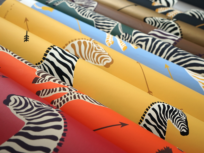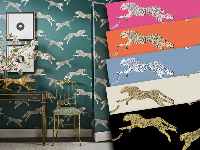 Scalamandré introduces a new wallpaper motif to join the menagerie, Leaping Cheetah! While our iconic Zebras design will always lead the proverbial pack, Leaping Cheetah is well on its way to becoming another Scalamandré classic. This instantly adored signature pattern features cheetahs frolicking against a backdrop of saturated, fashion-inspired colors and offers great graphic appeal!